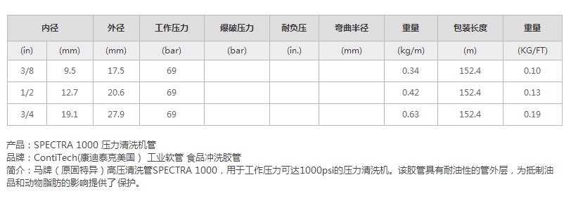 SPECTRA 1000 壓力清洗機(jī)管