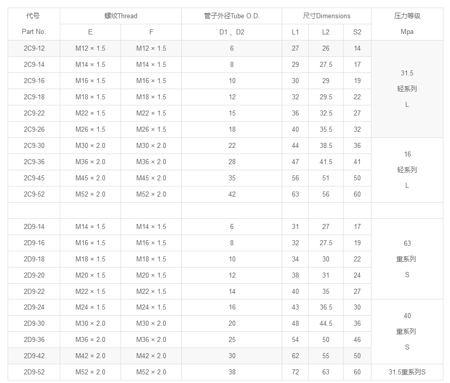12611英管外螺紋60°系列