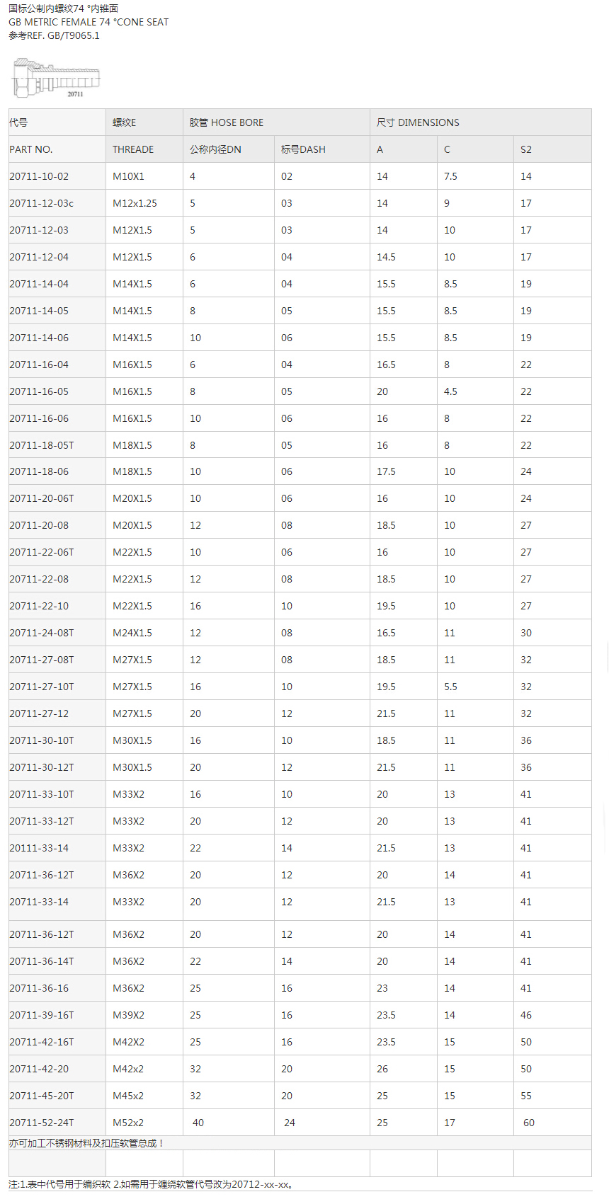20711公制內(nèi)螺紋74°內(nèi)錐面