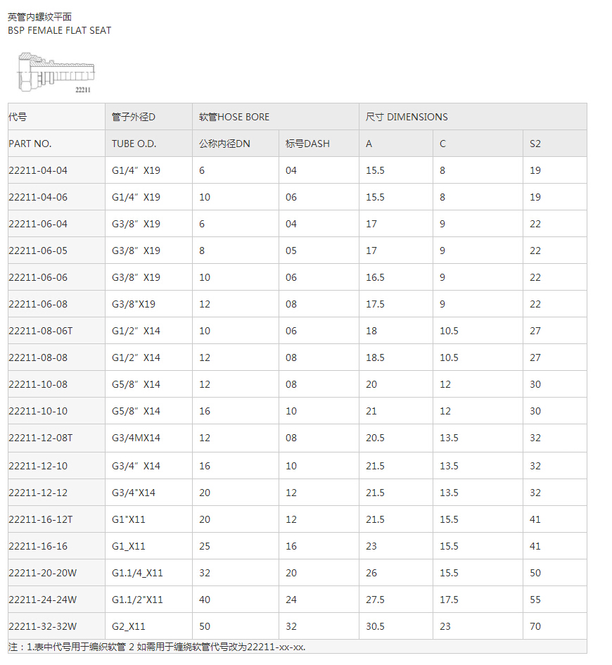 22211英管內(nèi)螺紋平面系列