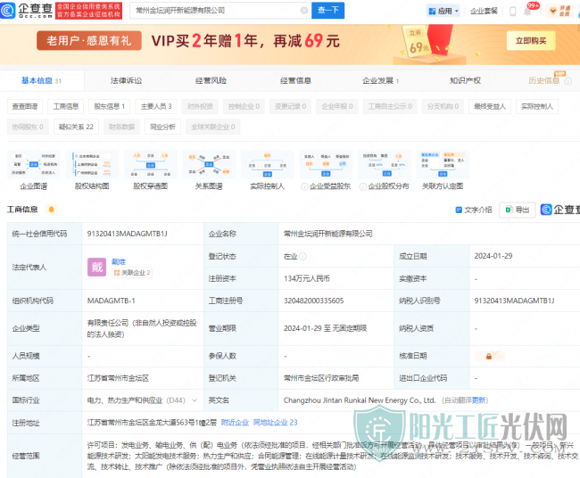 企查查顯示,1月29日,常州金壇潤開新能源有限公司成立,法定代表人為戴維,注冊資本134萬人民幣,經(jīng)營范圍含新興能源技術(shù)研發(fā)、太陽能發(fā)電技術(shù)服務(wù)、熱力生產(chǎn)和供應(yīng)、合同能源管理、在線能源監(jiān)測技術(shù)研發(fā)等。股權(quán)全景穿透圖顯示,該公司由時代綠色能源有限公司全資持股,后者為寧德時代全資子公司。